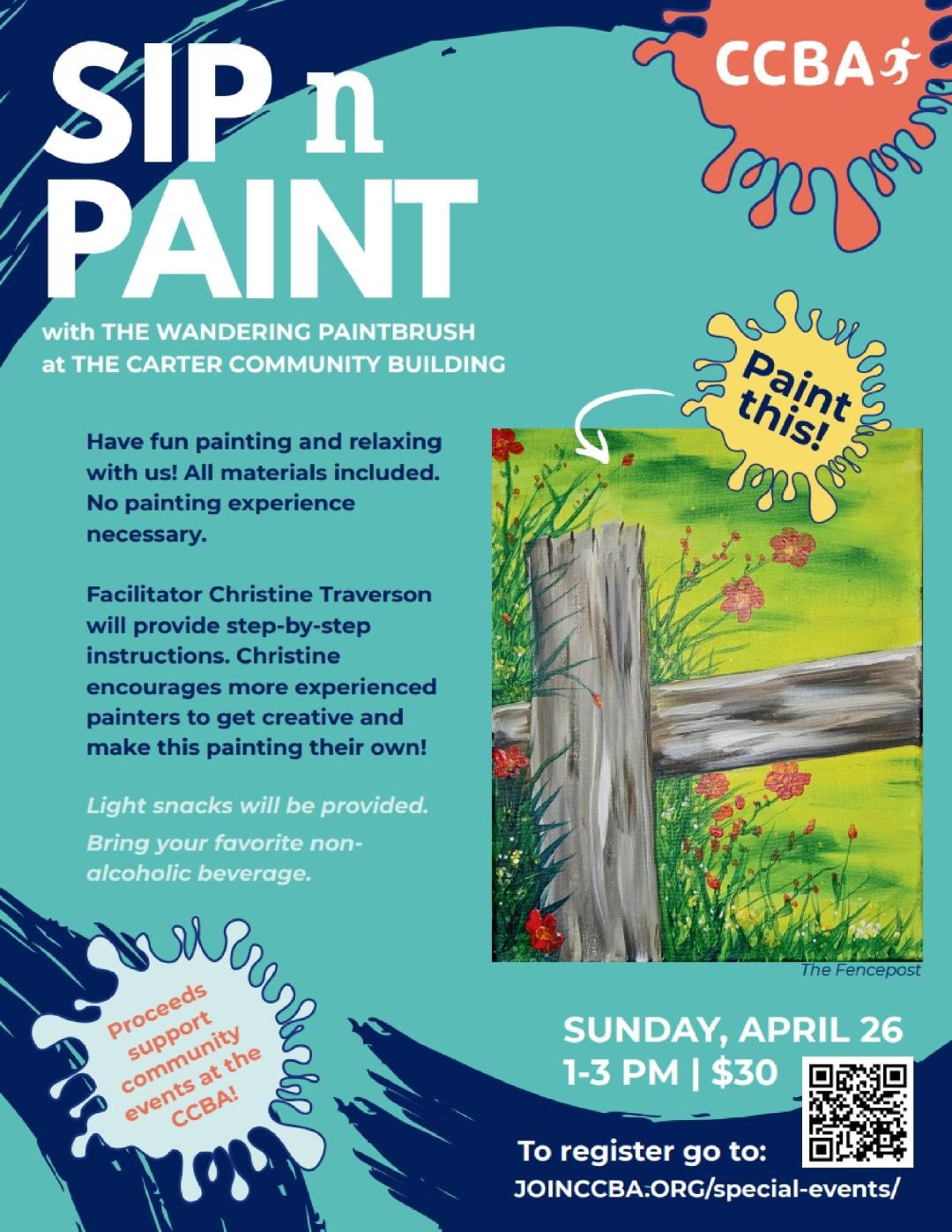 $30 per person includes materials, instructions, Christine's sense of humor, the company of fun people & snacks!